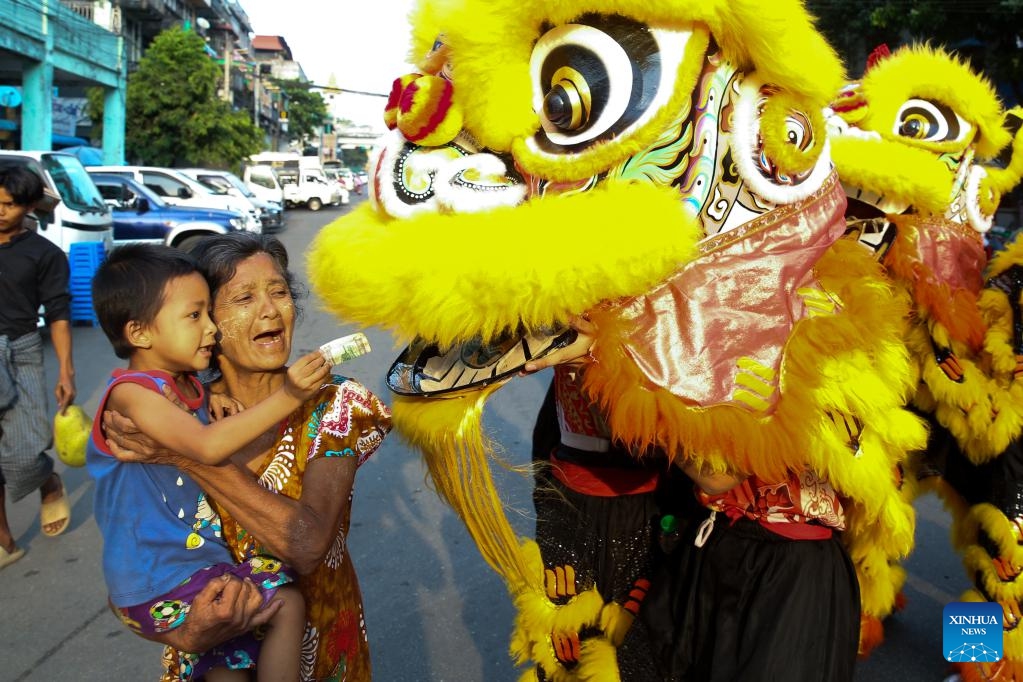 Their performances, held from April 3 to 8, attracted many passersby and encouraged donations. The group raised 5 million kyats (about 2,380 U.S. dollars), which they plan to donate to the Mandalay and Sagaing regions, according to the Feng Yi Dragon & Lion Dance Association.