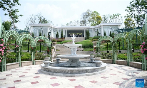 Visitors explore an exhibition at the Digital Exhibition Center of the Stone Caves in Anyue county, Southwest China's Sichuan Province, on April 16, 2025. Through the Tang (618-907) and Song (960-1279) dynasties, Anyue stone carving developed to its peak with the features of abundant, exquisite and magnificent. Now there are more than 100,000 stone statues preserved at about 230 sites in Anyue. Photo: VCG