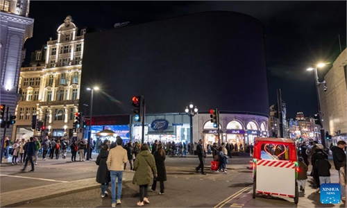 This photo taken on March 22, 2025 shows the Piccadilly Circus electronic billboard during the Earth Hour event ...