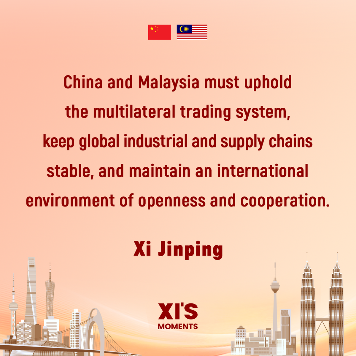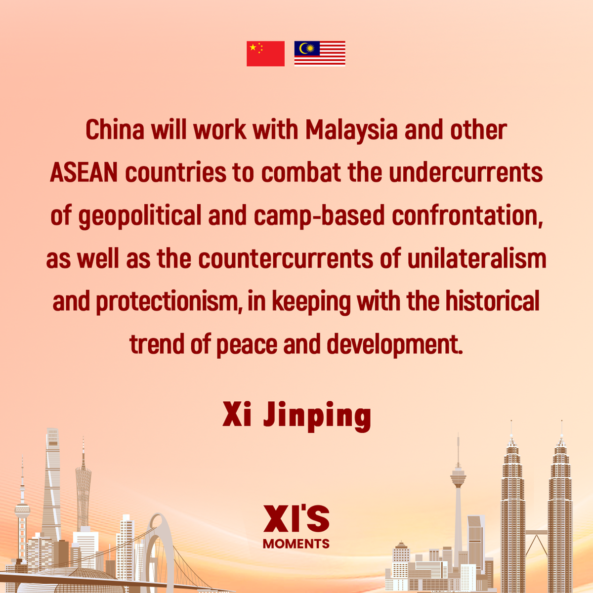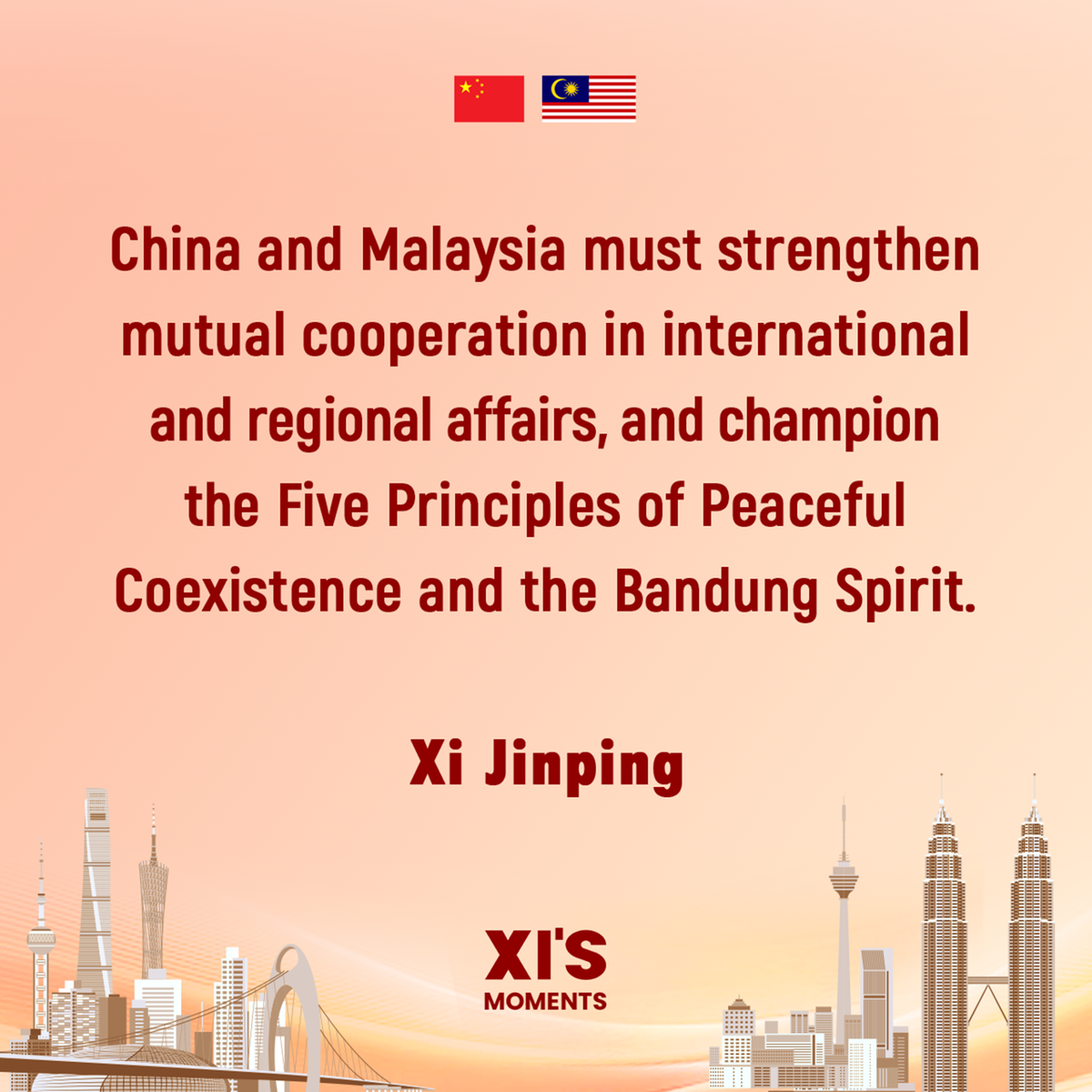 In his signed article published in Malaysian media on Tuesday, President Xi Jinping stressed China's commitment to working with Malaysia to uphold peace and development, as well as maintain an international environment of openness and cooperation. Here are some highlights.