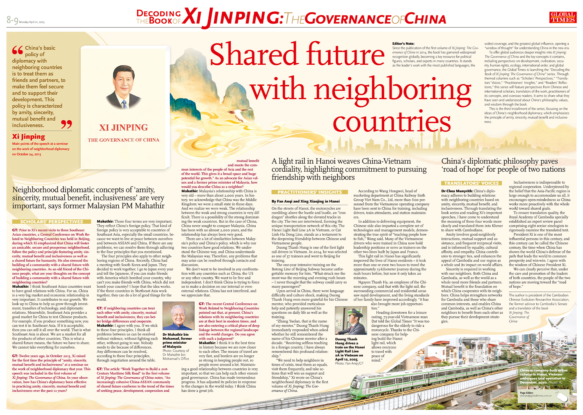 Xi Jinping: The Governance of China" series, the Global Times continues to invite Chinese and international scholars, translators of the work, practitioners of its concepts, and overseas readers to share their insights, understandings and reflections on the ideas of China's neighborhood diplomacy, which emphasizes amity, sincerity, mutual benefit and inclusiveness, China's advocacy for building a community with a shared future with neighboring countries as well as its vision of creating a peaceful, safe and secure, prosperous, beautiful and amicable home.
