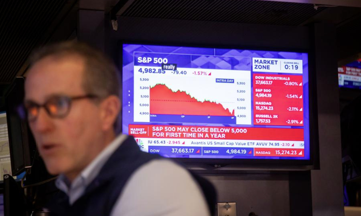 A trader works on the floor of the New York Stock Exchange in New York, the United States, on April 8, 2025. (Photo by Michael Nagle/Xinhua)