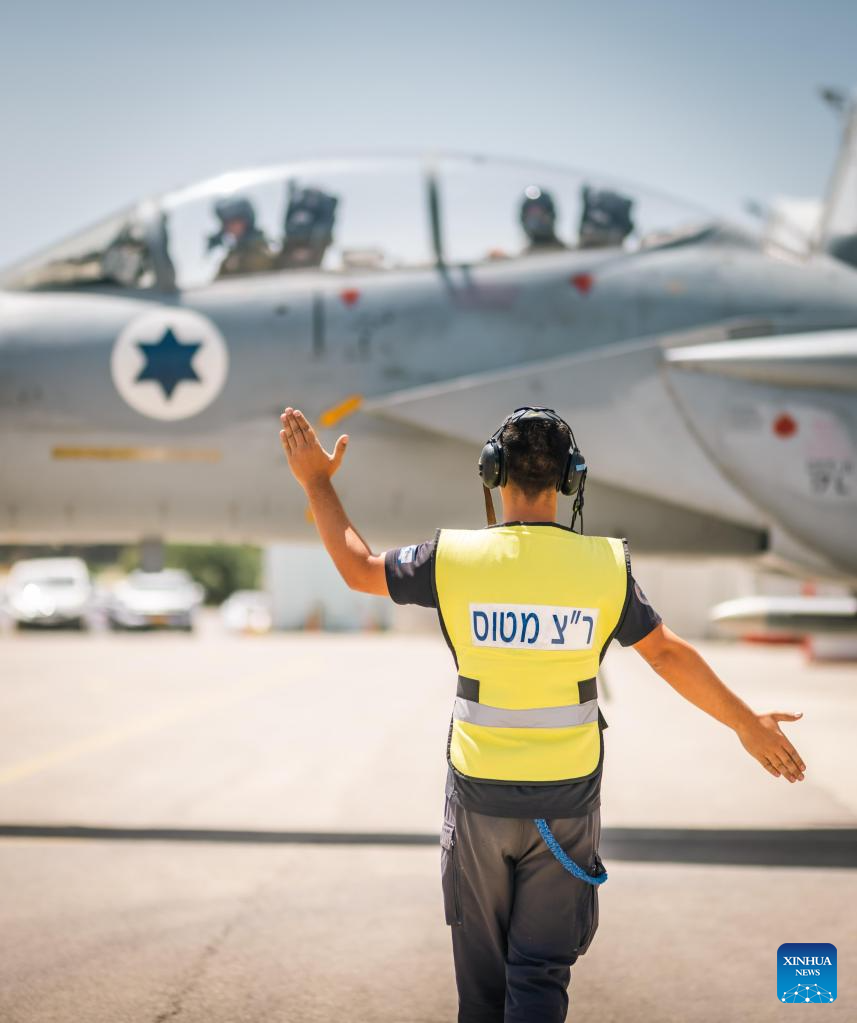 This photo released by the Israel Defense Forces on May 16, 2025 shows an Israeli military aircraft preparing for airstrike operations in Yemen. Israeli airstrikes on two Houthi-controlled ports in northwestern Yemen on Friday killed at least one person and wounded nine others, according to Houthi-run health authorities. (Israel Defense Forces/Handout via Xinhua)
