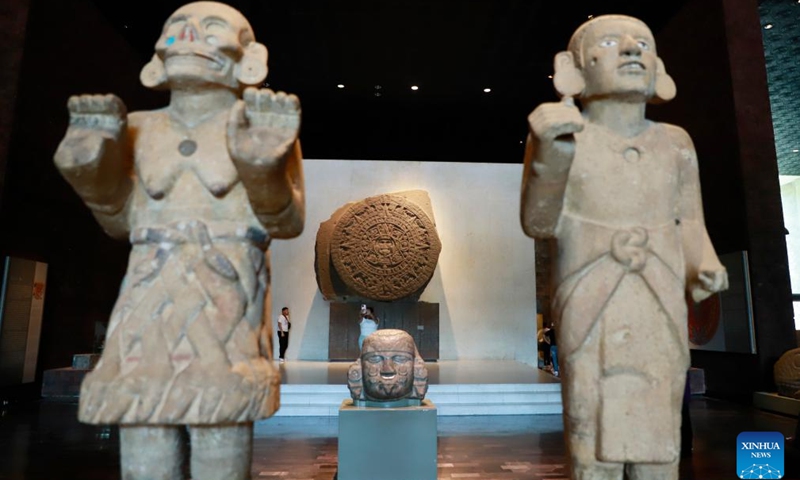 Exhibits are pictured at the National Museum of Anthropology in Mexico City, capital of Mexico, on May 15, 2025. The National Museum of Anthropology is located at Chapultepec Park in Mexico City and is one of the largest and most popular museums in Mexico, showcasing Mexico's cultural heritage from prehistoric times. Internatioanl Museum Day is celebrated on May 18 every year. (Photo: Xinhua)