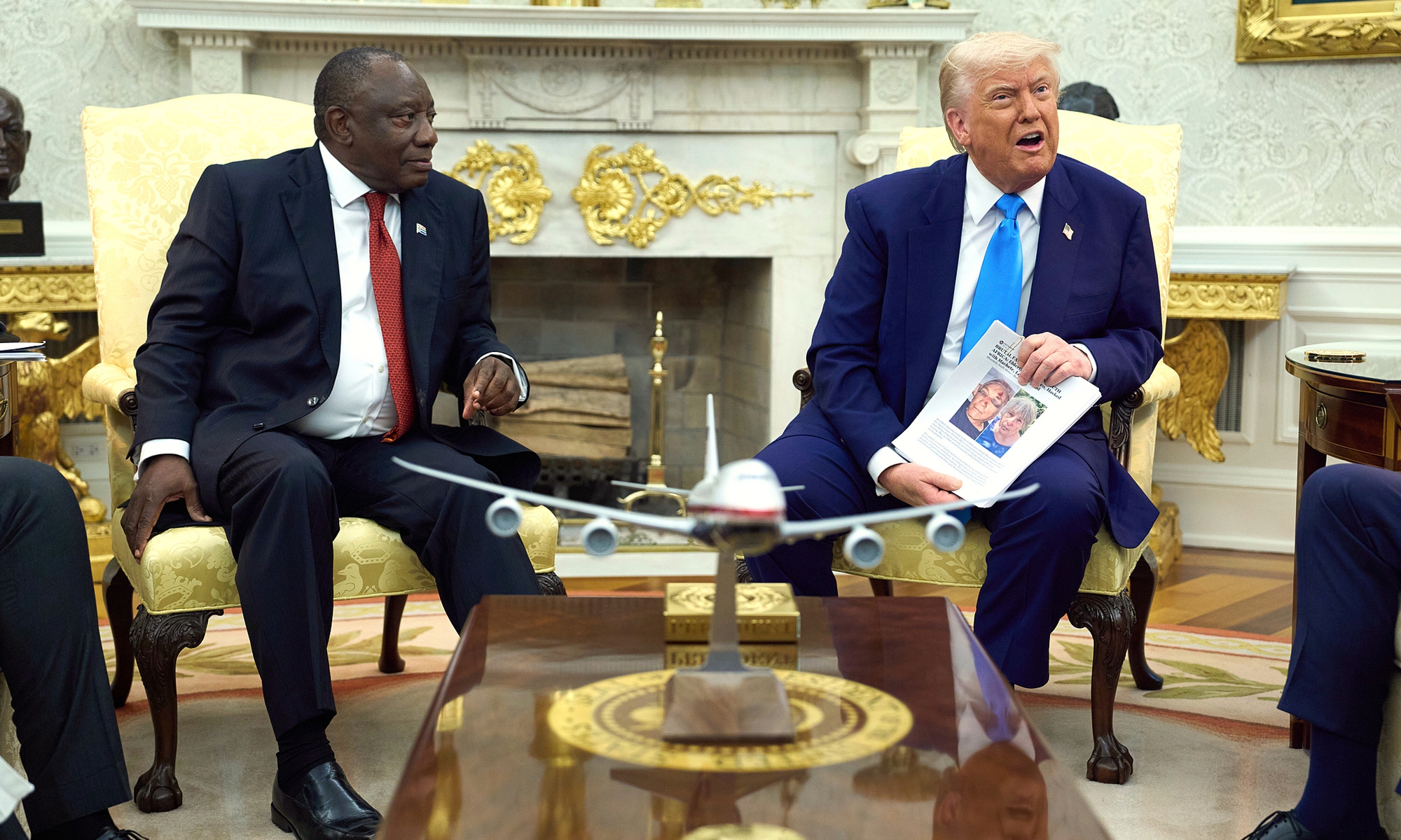 During their meeting in the Oval Office, Trump accused South Africa of "white genocide" and unfair land seizures, and then unexpectedly presented a video and a stack of printed news articles which he said proved his allegations, Xinhua reported.