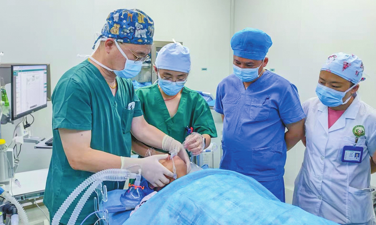 Wang Jing administers anesthesia to a patient during surgery at a hospital in Yunnan Province. Photo: Courtesy of Wang Jing