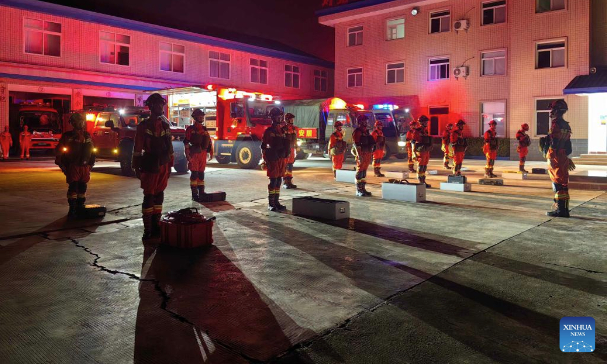 Firefighters are ready to set out for rescue operation, in Dali Bai Autonomous Prefecture, southwest China's Yunnan Province on June 5, 2025. A 5.0-magnitude earthquake struck Eryuan County in Bai Autonomous Prefecture of Dali, southwest China's Yunnan Province at 4:31 a.m. Thursday (Beijing Time), according to the China Earthquake Networks Center (CENC). The epicenter was monitored at 26.26 degrees north latitude and 100.03 degrees east longitude. The quake struck at a depth of 10 km, said a report issued by the CENC. The quake was strongly felt in Eryuan County, Dali City and Heqing County, waking some residents. Local authorities in Eryuan County have promptly initiated an emergency response, with townships assessing the impact. (Xinhua)