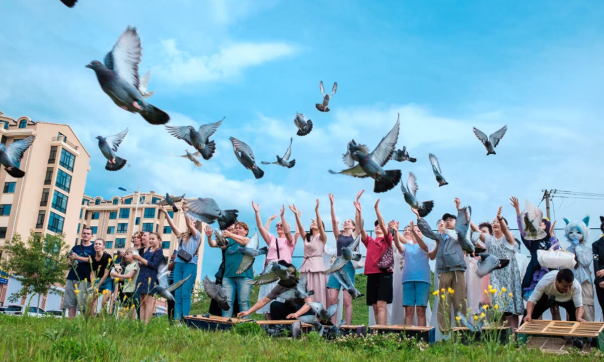 Residents from Suifenhe and Russian visitors jointly release peace doves to celebrate China-Russia friendship in Suifenhe, Heilongjiang Province, on July 22, 2024. Photo: Courtesy of Suifenhe Photographers Association.