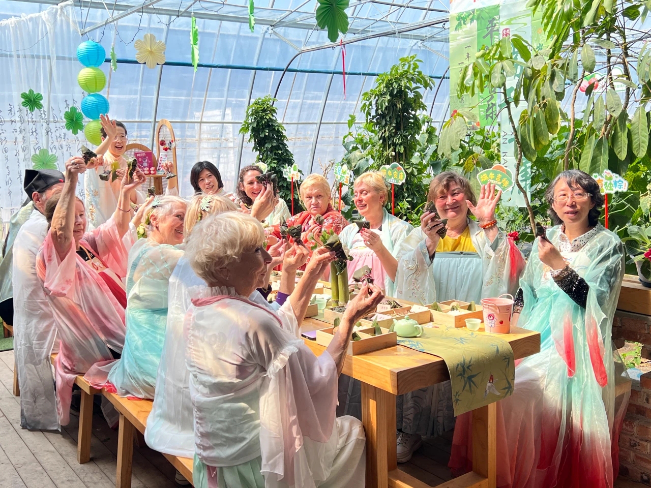 Visiting Russian seniors experience traditional folk customs such as making Chinese sticky rice dumplings and sachets with local residents in Suifenhe, on May 26, 2025. Photo: Courtesy of Zhang Chao