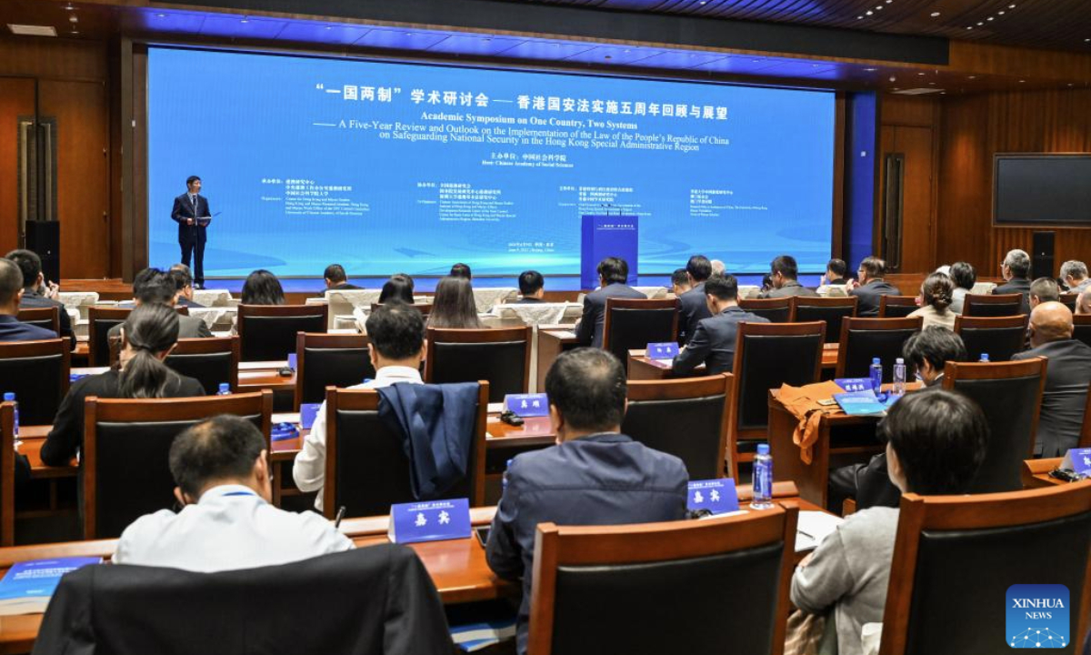 An academic symposium on "one country, two systems" was held in Beijing on Monday, focusing on a five-year review and outlook on the implementation of the Hong Kong national security law.
