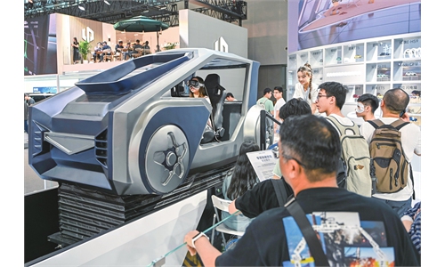 A visitor tries a remote-controlled container simulator at the 3rd Tianjin International Shipping Industry Expo in North China's Tianjin Municipality on June 12, 2025. The event showcases global cooperation and innovation in shipping, with the number of attendees expected to hit 80,000, up more than 15 percent from last year. Photo: VCG