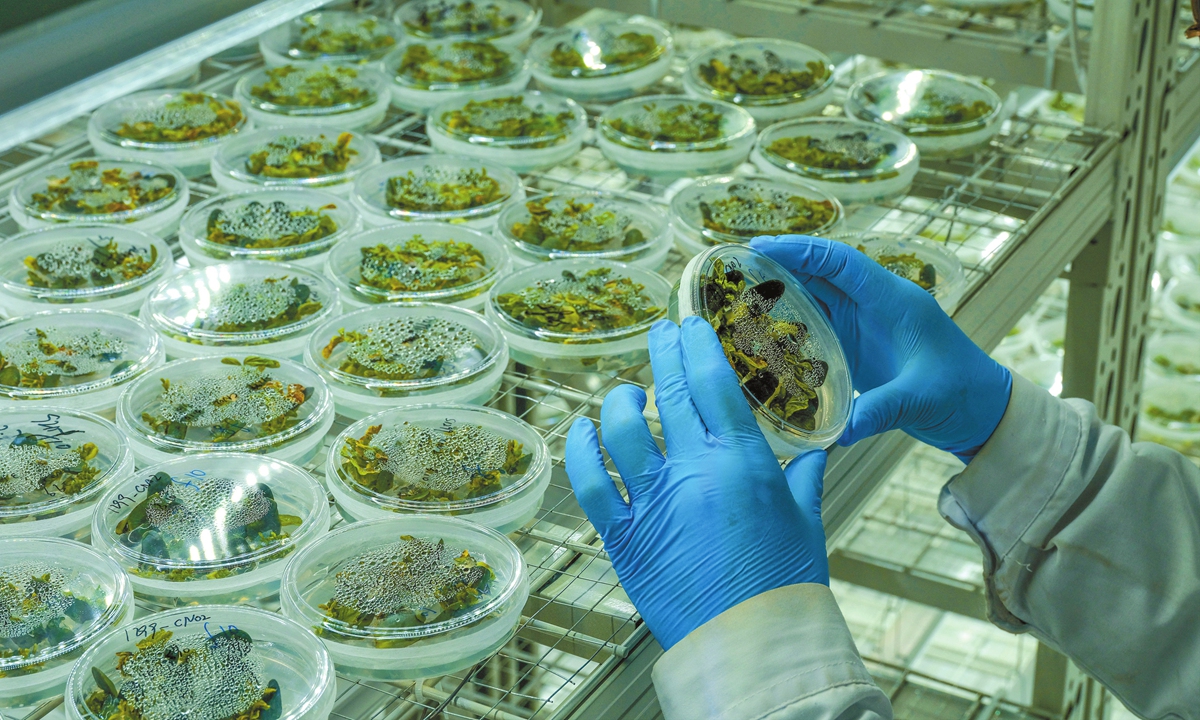 A petri dish containing soybeans is displayed in the laboratory of a biotechnology company in Chengdu, Southwest China's Sichuan Province, on March 25, 2025. Photo: VCG