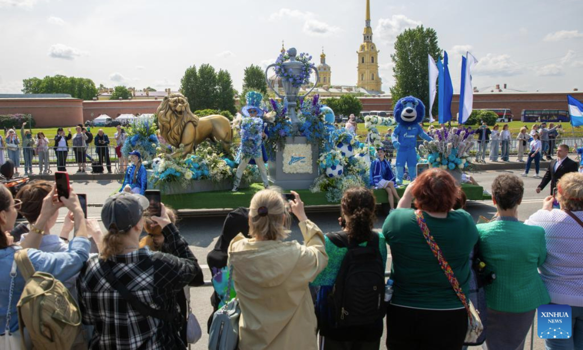 People attend a flower festival to celebrate the Russia Day at Peter and Paul Fortress in St. Petersburg, Russia, June 12, 2025. Russia Day marks the date when the First Congress of People's Deputies of the Russian Federation adopted the Declaration of Russia's National Sovereignty in 1990. (Photo by Irina Motina/Xinhua)