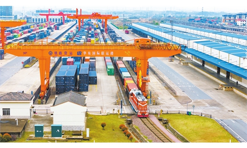A China-Central Asia freight train bound for Tashkent via Horgos departs from a station in Tianjin Port in North China's Tianjin, May 20, 2025. Photo: Xinhua