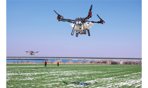 A machine harvests ripe wheat in high-standard farmland in Guangrao county, East China's Shandong Province, on June 17, 2025. By 2030, China aims to have developed 1.35 billion mu (90 million hectares) of high-standard farmland, the Xinhua News Agency reported. Photo: VCG