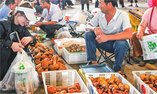 Shoppers select felt handicrafts from Nepal during the 9th China-South Asia Expo in Kunming, Southwest China's Yunnan Province on June 22, 2025. The expo, which is being held from June 19 to June 24, plays an active role in boosting regional cooperation and fostering closer trade ties. Photo: VCG