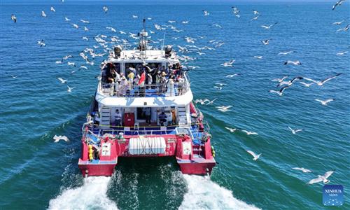 Members of an emergency rescue team help evacuate residents after heavy rain on June 25, 2025 in Dazhou, Southwest China's Sichuan Province. Since June 24, the city has experienced heavy downpours, with some areas receiving 100 millimeters of rainfall and hourly intensities reaching 20 to 40 millimeters. A blue rainstorm alert was issued by the local meteorological authority. Photo: VCG