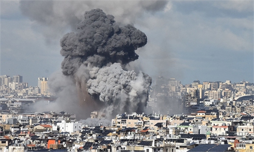 Thick plumes of smoke are seen rising following the Israeli army carried out an airstrike targeting the al-Shujaiya neighborhood in eastern Gaza City on July 2, 2025. Photo: VCG
