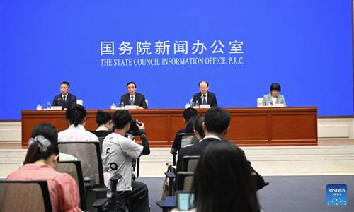 Cheng Kai, chairman of the China Disabled Persons' Federation, Zhou Changkui, secretary of the Communist Party of China leading group of the federation and chairperson of the board of executive directors of the federation, and Li Dongmei, vice chairperson of the federation, attend a press conference held by the State Council Information Office on the achievements in developing the cause of people with disabilities during the 14th Five-Year Plan period (2021-2025), in Beijing, capital of China, July 22, 2025. (Xinhua/Chen Yehua)