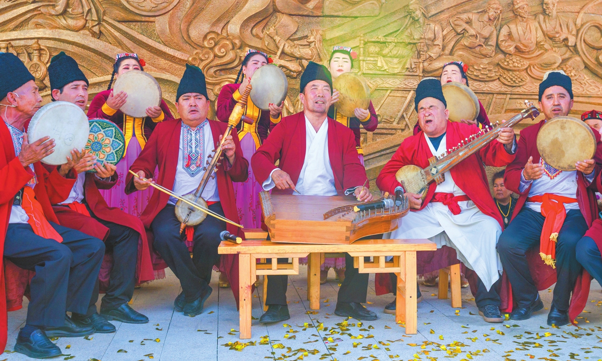 Residents perform Muqam, a traditional art form of the Uygur ethnic group, for tourists at the Urumqi Grand Bazaar, Northwest China's Xinjiang Uygur Autonomous Region, on June 28, 2025. Photo: VCG