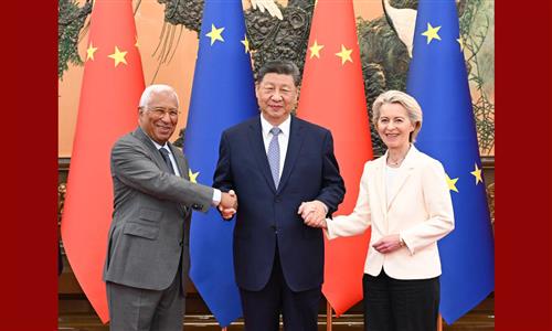 Amid the escalating geopolitical tensions and the rise of economic nationalism and unilateralism, what the world needs the most is cooperation. The summit held in Beijing on Thursday has once again demonstrated the clear common ground between China and the EU. We look forward to working with the EU side to expand the "cake" of common interests, countering the noise of "politicization" and "de-risking" with more pragmatic outcomes, and writing an even more splendid chapter in China-EU relations over the next 50 years.