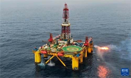 This aerial photo taken on November 4, 2023 shows a major gas and oil processing station in the Fuman oilfield in northwest China's Xinjiang Uygur Autonomous Region. Photo: Xinhua