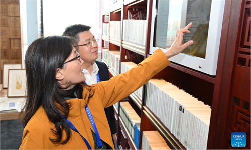 Visitors explore the Dunhuang Culture & Art Exhibition at the Beijing Exhibition Center on March 27, 2025 in ...