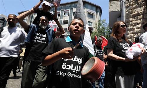 Palestinians, who face difficulties accessing food due to the blockade imposed by Israel, wait to receive aid rations in the Gaza Strip on August 5, 2025. Photo: VCG