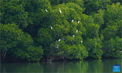 A tourist poses for photos with mangroves at Beddagana Wetland Park in Colombo, Sri Lanka, July 24, 2025. July 26 marks the International Day for the Conservation of the Mangrove Ecosystem. Sri Lanka's mangroves play an important role in purifying seawater, buffering coastal storms, sequestering carbon and sustaining biodiversity. (Photo by Gayan Sameera/Xinhua)
