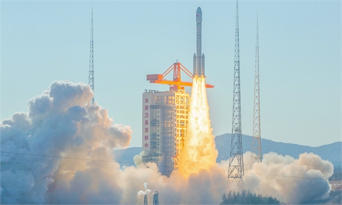 China successfully launches a new group of low Earth orbit satellites from the Wenchang Space Launch Site in the southern island province of Hainan on August 13, 2025. This satellite group, the eighth of its kind that will constitute an internet constellation, was launched at 2:43 pm aboard a Long March-5B carrier rocket, featuring a Yuanzheng-2 upper stage at the top of the rocket. Photo: cnsphoto