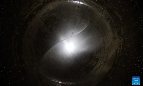 This stitched photo shows the central detector of the Jiangmen Underground Neutrino Observatory under construction in Jiangmen, South China's Guangdong Province on October 9, 2024. Photo: Xinhua