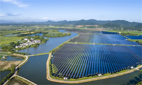 Blades for wind power systems wait to be loaded onto ships for export markets at a wharf in Lianyungang, East China's Jiangsu Province, on September 8, 2025. In the first half of the year, China's wind power equipment exports grew by more than 20 percent year-on-year. Wind power is an important energy source in the process of green transition. Photo: VCG