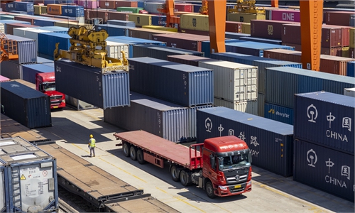 Workers inspect a row of giant excavators inside a factory in Weinan, Northwest China's Shaanxi Province, on September 9, 2025, before they are sent to customers. From January to August, 154,181 Chinese-made excavators were sold in the domestic and foreign markets, a year-on-year increase of 17.2 percent, the Securities Times reported, citing industry data. Photo: VCG