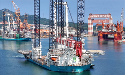 A worker conducts annual maintenance on top of a power line of the Yangzhou-Zhenjiang ±200 kilovolt direct-current transmission project, China's first alternating-current to direct-current power conversion project, in Zhenjiang, East China's Jiangsu Province on September 10, 2025. China's total electricity consumption in July made history by surpassing the 1 trillion kilowatt-hour threshold, according to official data. Photo: cnsphoto