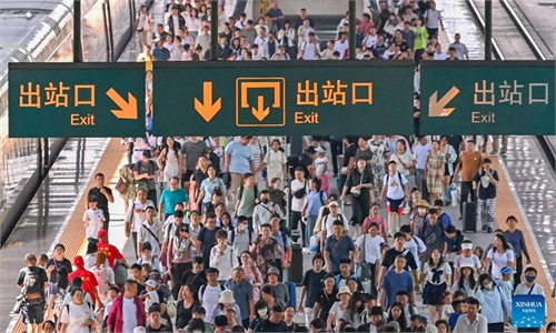 The China State Railway Group Co told Global Times in a statement on Monday that passenger trips during the upcoming 12-day holiday travel peak, from September 29 to October 10, are expected to top 219 million, with October 1 set to be the peak day.