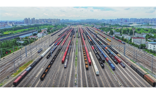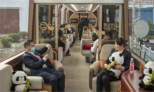 China's first standard smart intercity train with fully independent intellectual property rights is displayed at the 2025 China International Metro Transit Exhibition in Qingdao, East China's Shandong Province, on September 18, 2025. The train marks a major breakthrough in China's intercity rail transit equipment.