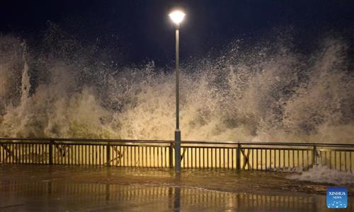 Huge waves surge in front of a seawall in Shenzhen, South China's Guangdong Province, on September 24, 2025, as Typhoon Ragasa made landfall on this day on the province's Hailing Island. Photo: VCG