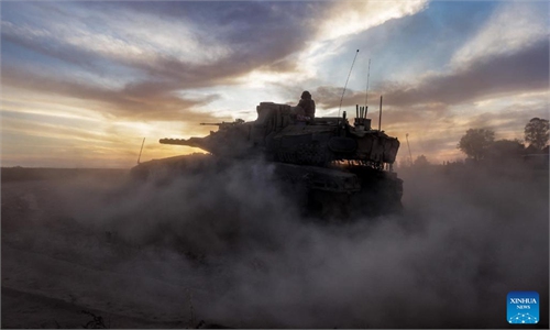 Trucks loaded with humanitarian aid on the Egyptian side of the Rafah crossing wait to cross into the Gaza Strip early on October 15, 2025, after Israel said it would allow the crossing to reopen. Photo: VCG