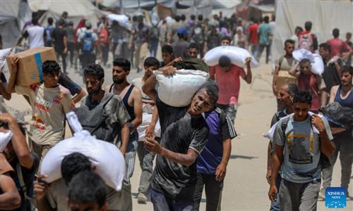 Palestinians carry humanitarian aid in northern Gaza Strip