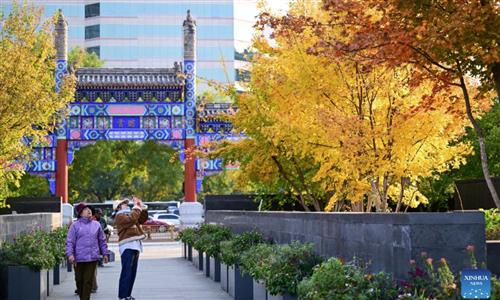 Residents work out at a square in front of the Bell Tower, an ancient landmark on the Beijing Central Axis, on November 4, 2025. Photo: Liu Yang/GT