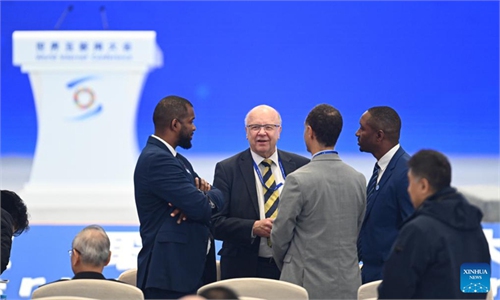 A distinguished contribution award is presented to recognize individuals and enterprises that have made outstanding contributions to the global internet landscape at the opening ceremony of the 2025 World Internet Conference (WIC) Wuzhen Summit in Wuzhen, East China’s Zhejiang Province, on November 7, 2025. Photo: Chi Jingyi/GT