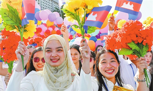 Some Cambodian people take a selfie during a ceremony marking Independence Day, at the Independence Monument in Phnom Penh, Cambodia, on November 9, 2025. Cambodia on Sunday commemorated the 72nd anniversary of its national independence from French colonial rule. Photo: VCG