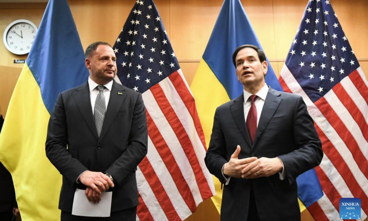 US Secretary of state Marco Rubio (2-L) and Head of the Office of the President of Ukraine Andriy Yermak (2-R), at the beginning of their talks at the US Mission in Geneva, Switzerland, 23 November 2025. Photo: VCG