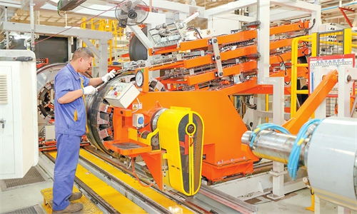 A worker operates automated equipment on the production line at a high-tech manufacturing company in Huaying, Southwest China's Sichuan Province, on December 1, 2025. In recent years, the city has advanced toward high-end, smart and green development, and steadily upgraded industrial equipment and technologies.