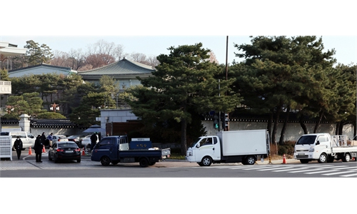 South Korean police check the outside of Cheong Wa Dae, known as the Blue House, on December 21, 2025 in Seoul. President Lee Jae-myung pledged to move his office from defense ministry's compound in Yongsan back to the Blue House once renovations are completed, the Yonhap News Agency reported. Photo: VCG