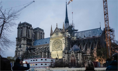 A pedestrian takes a picture of the Notre-Dame de Paris cathedral in Paris on December 4, 2024, before ...
