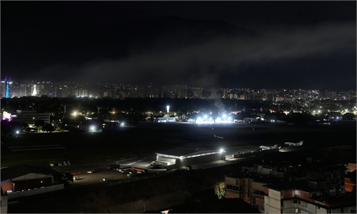 Picture of fire at Fuerte Tiuna, Venezuela's largest military complex, after a series of explosions in Caracas on January 3, 2026. Loud explosions, accompanied by sounds resembling aircraft flyovers, were heard in Caracas around 2:00 am (0600 GMT) on January 3, an AFP journalist reported. Photo: CFP