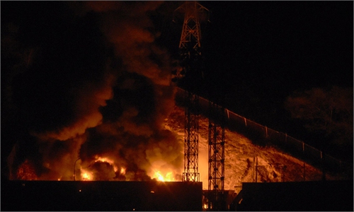 Picture of fire at Fuerte Tiuna, Venezuela's largest military complex, after a series of explosions in Caracas on January 3, 2026. Loud explosions, accompanied by sounds resembling aircraft flyovers, were heard in Caracas around 2:00 am (0600 GMT) on January 3, an AFP journalist reported. Photo: VCG