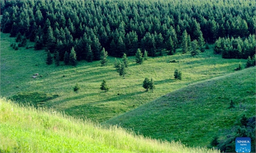 Tourists are amused by a penguin wearing a red scarf at an entertainment block in Hohhot, North China's Inner Mongolia Autonomous Region on January 13, 2025. Photo: VCG