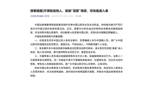 Previously, an armed attack took place on November 26, 2025 in the border district of Shamsiddin-Shohin in Khatlon region near Afghanistan, leaving three Chinese nationals dead and one injured. The embassy strongly condemned it, calling the incident a grave criminal act. Later on November 30, another armed attack in the same area also resulted in casualties of Chinese citizens, prompting the embassy to issue a safety alert.